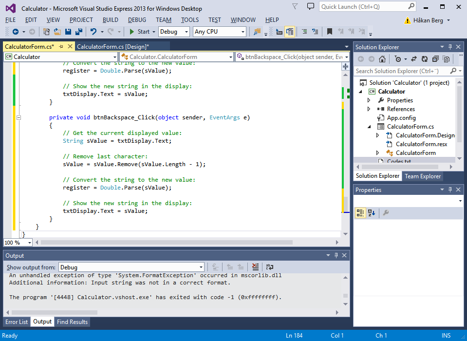 If the calculator did not work properly, set a breakpoint and start debugging.